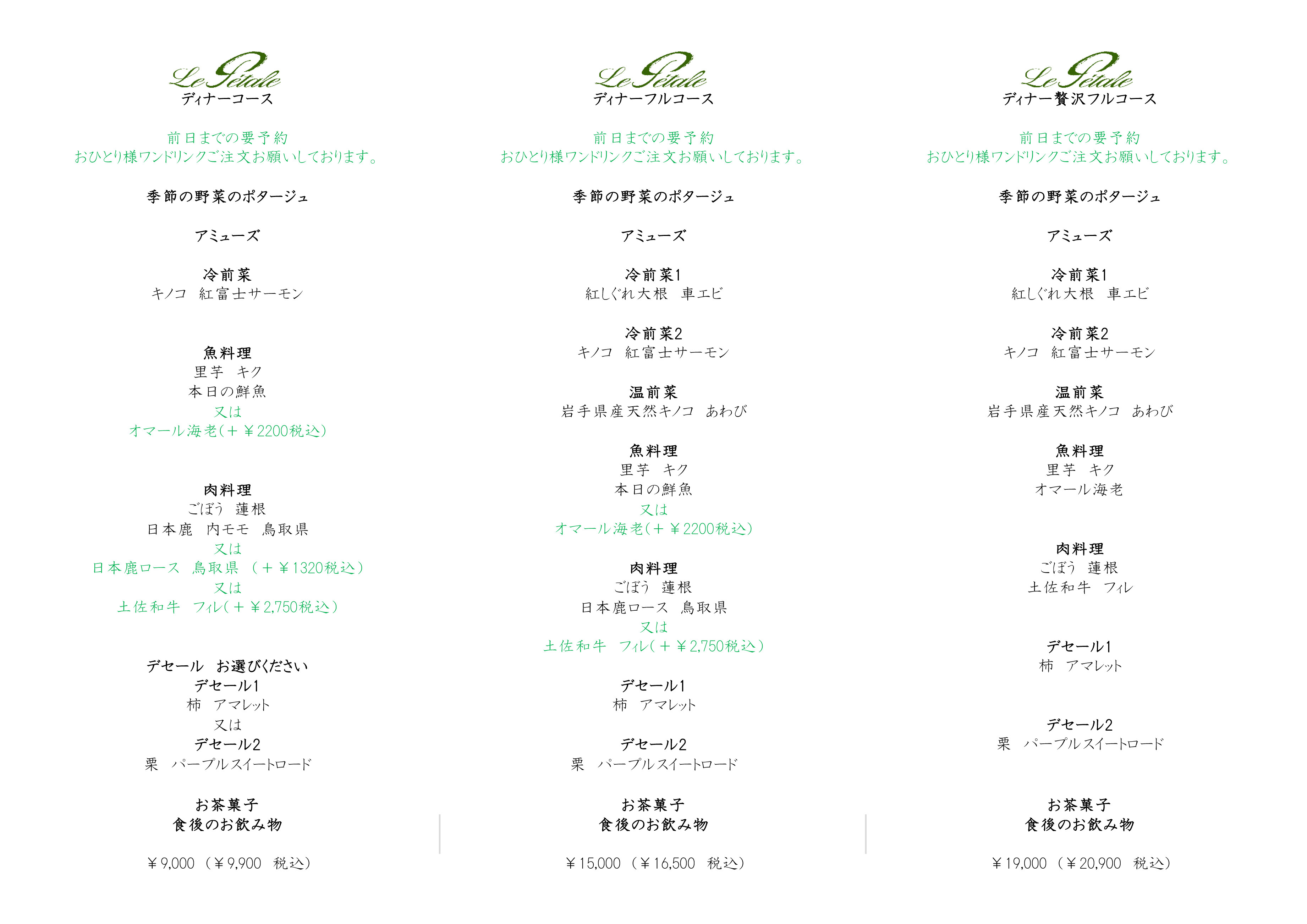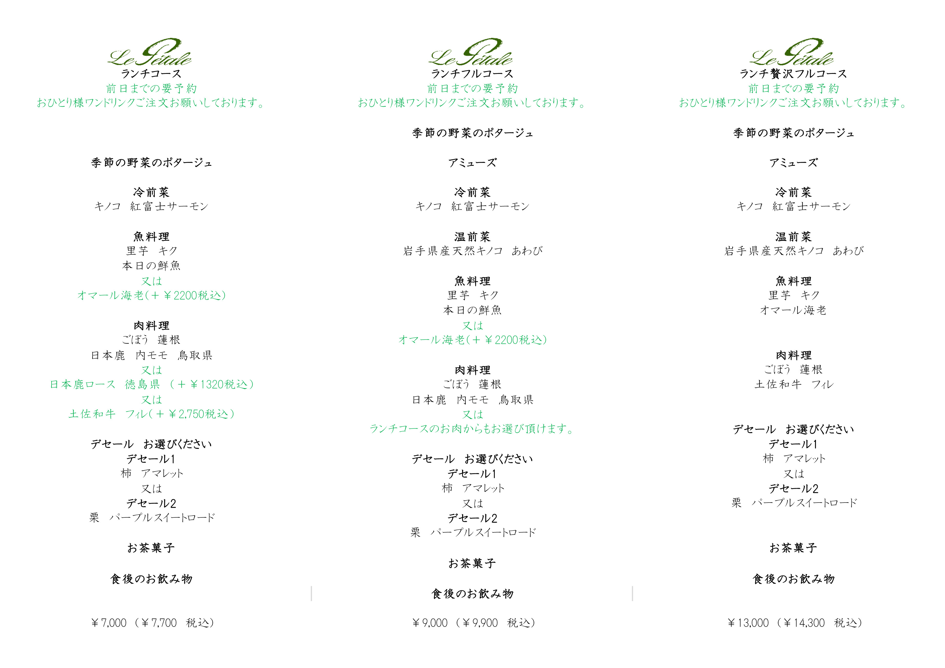 前日までにコースのご予約の無い日は、臨時休業しております。