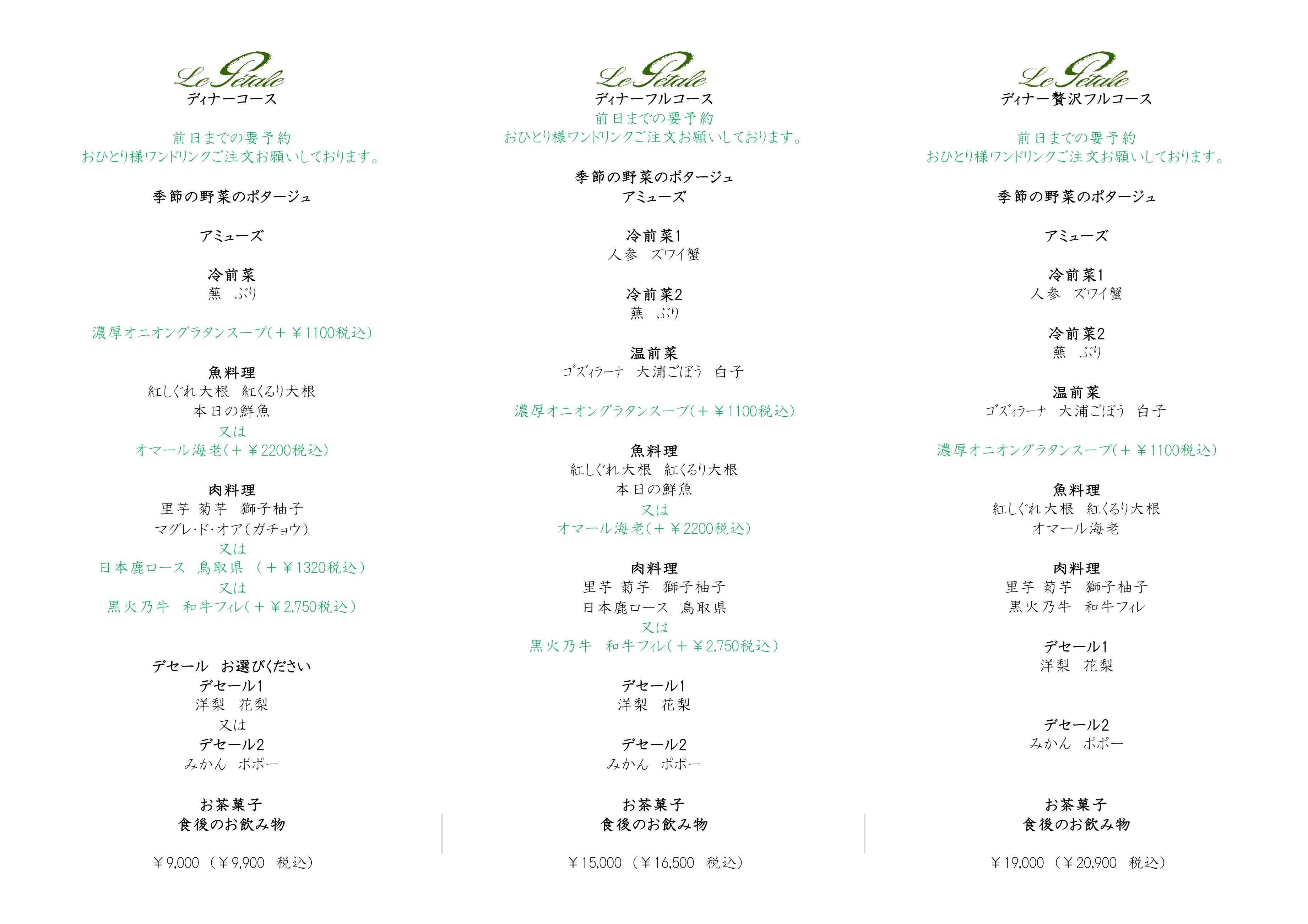 クリスマスディナーコースのみ