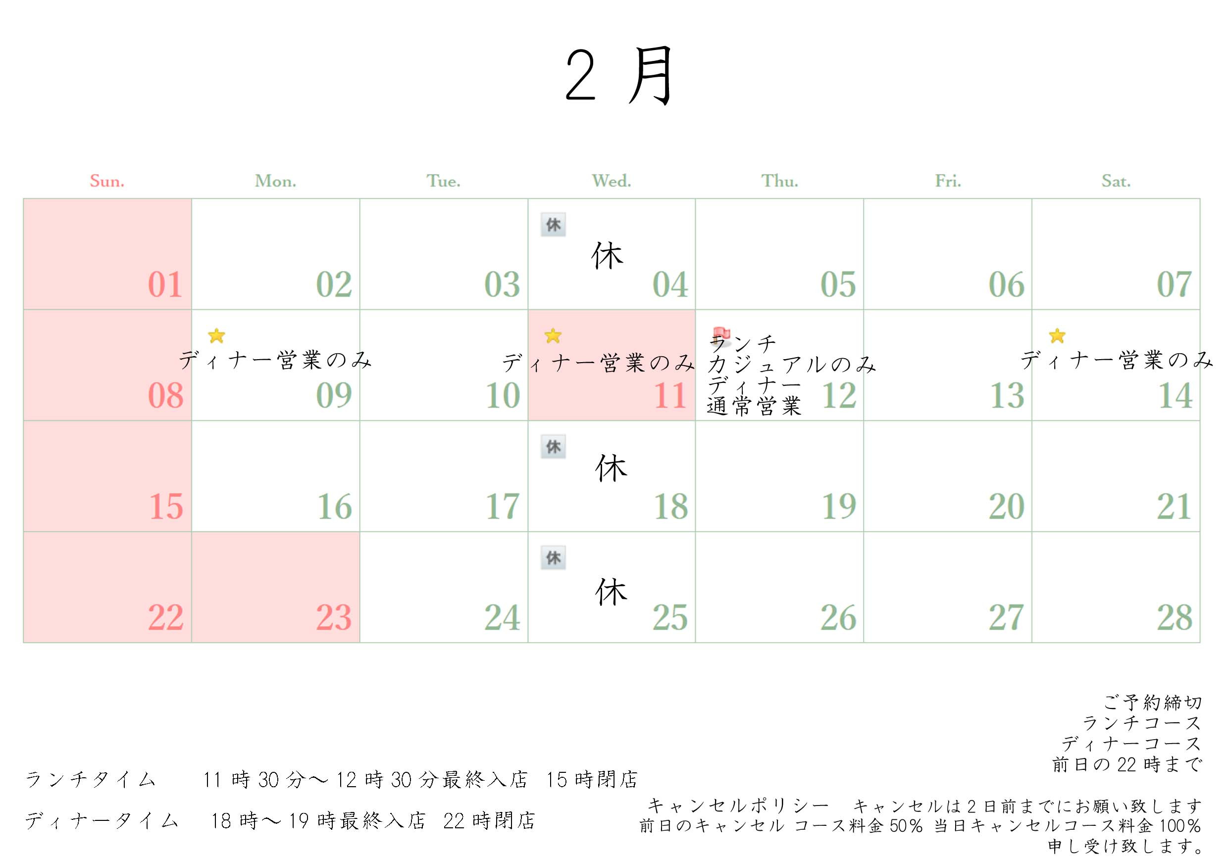 2026年2月のスケジュールです。