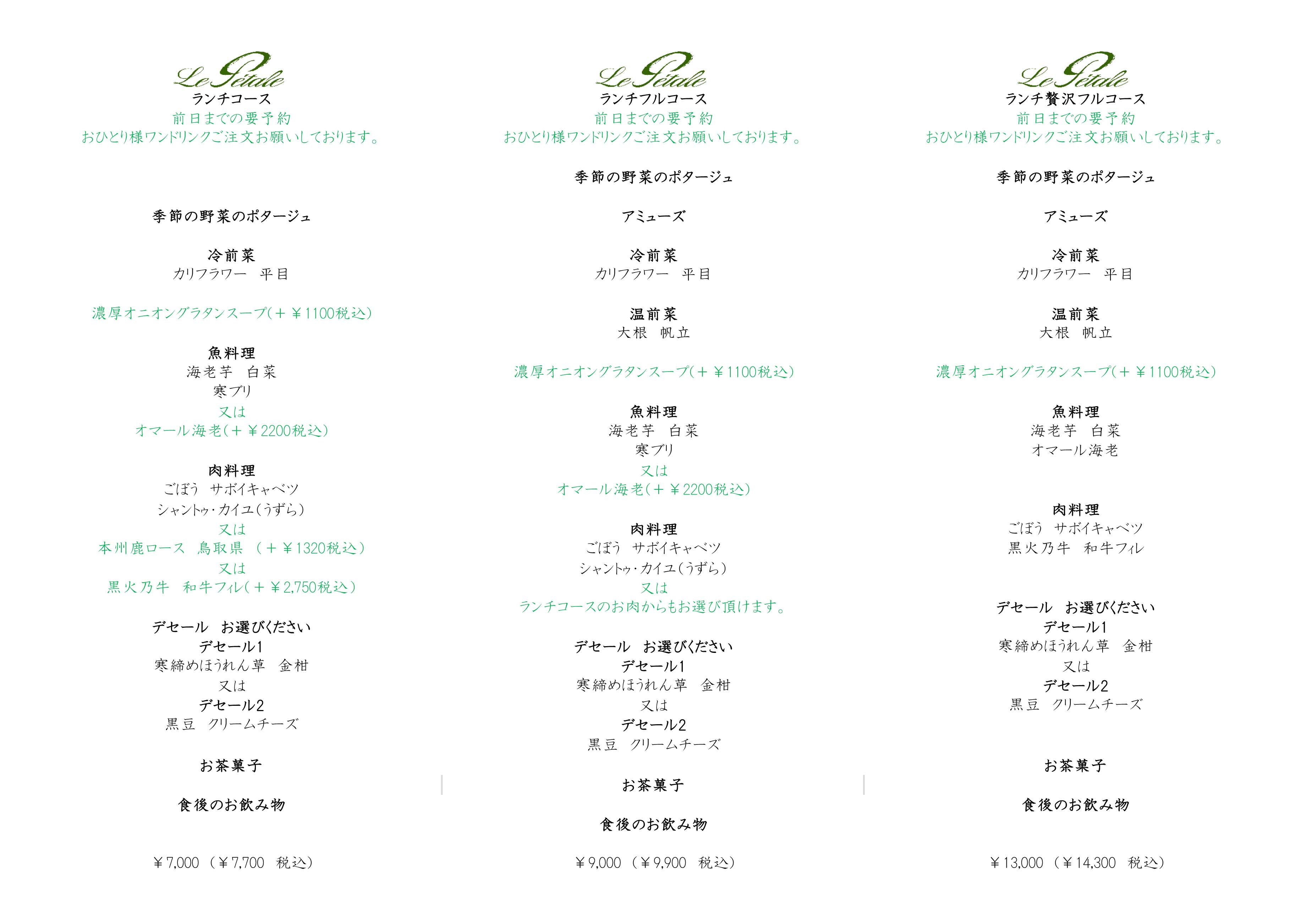 仕入れ状況により上記と違うメニューの場合もございます。