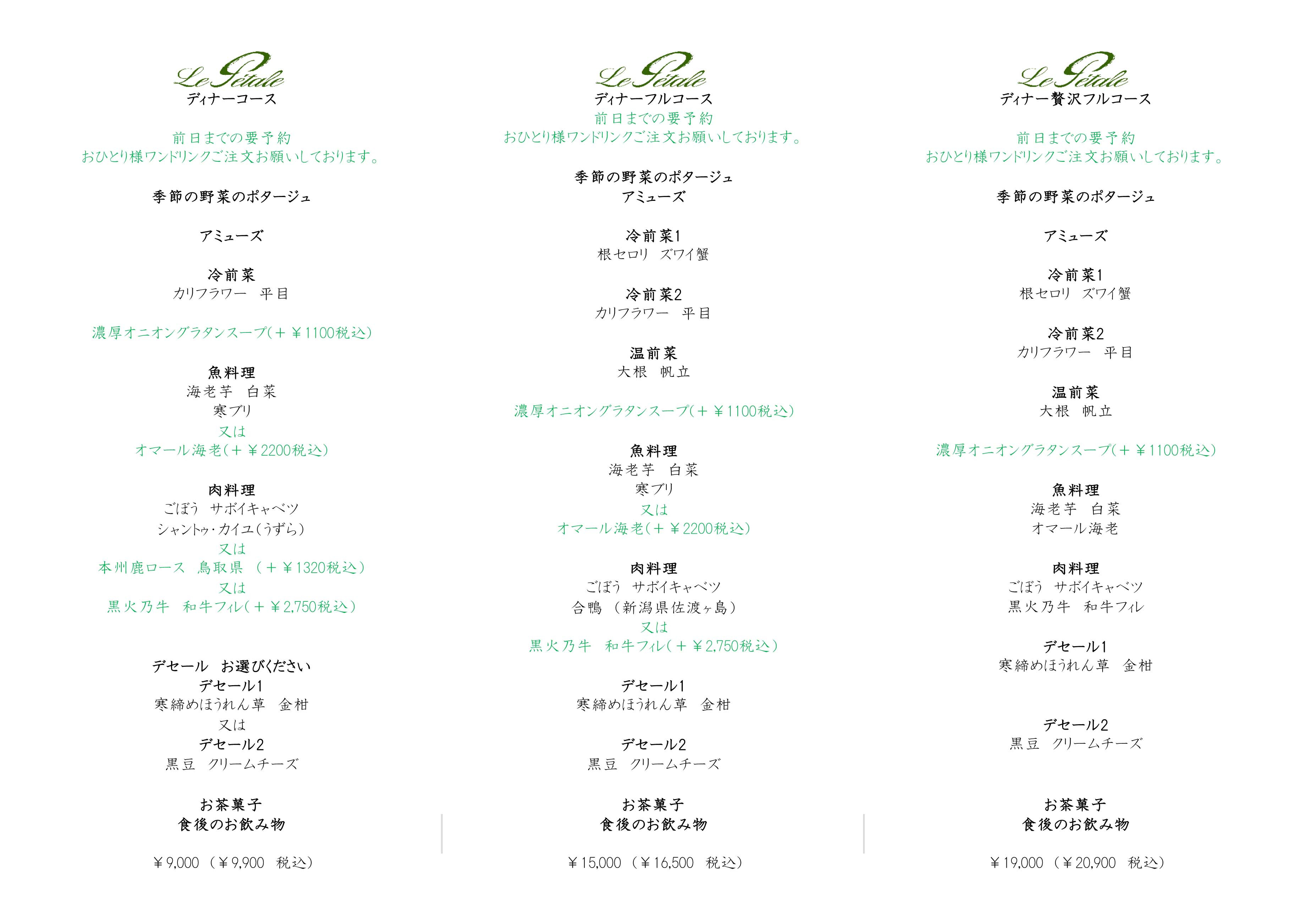 全コース前日の22時までの要予約