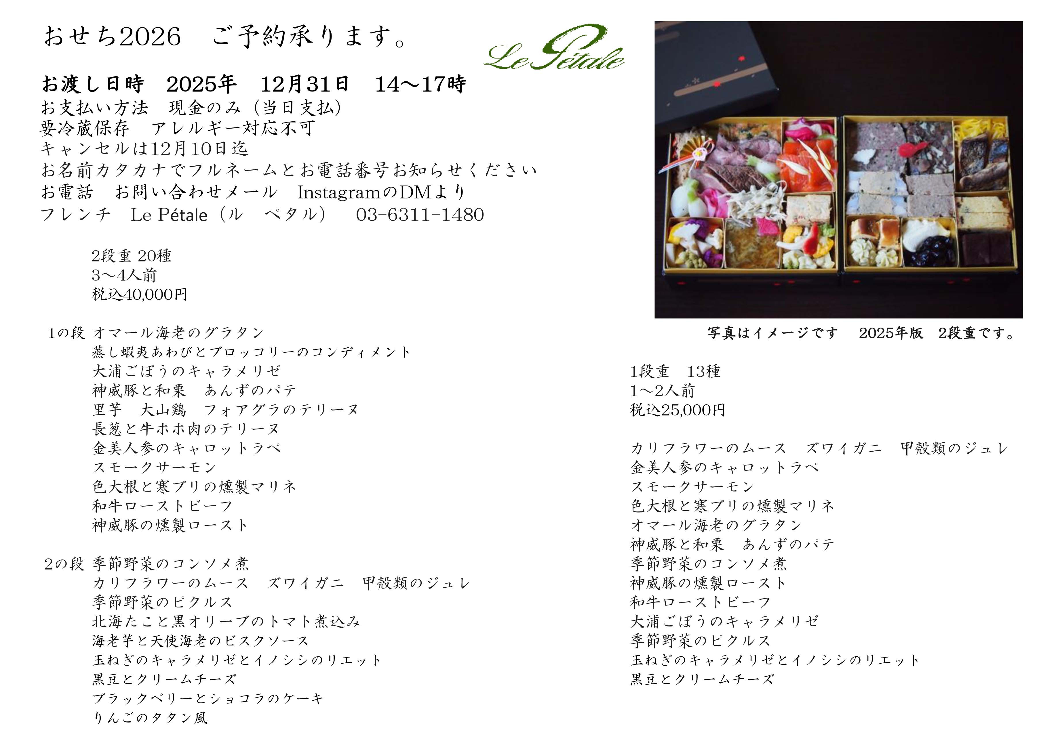 シェフが腕によりをかけたおせちで新年の食卓を彩って頂けたらと思います。
