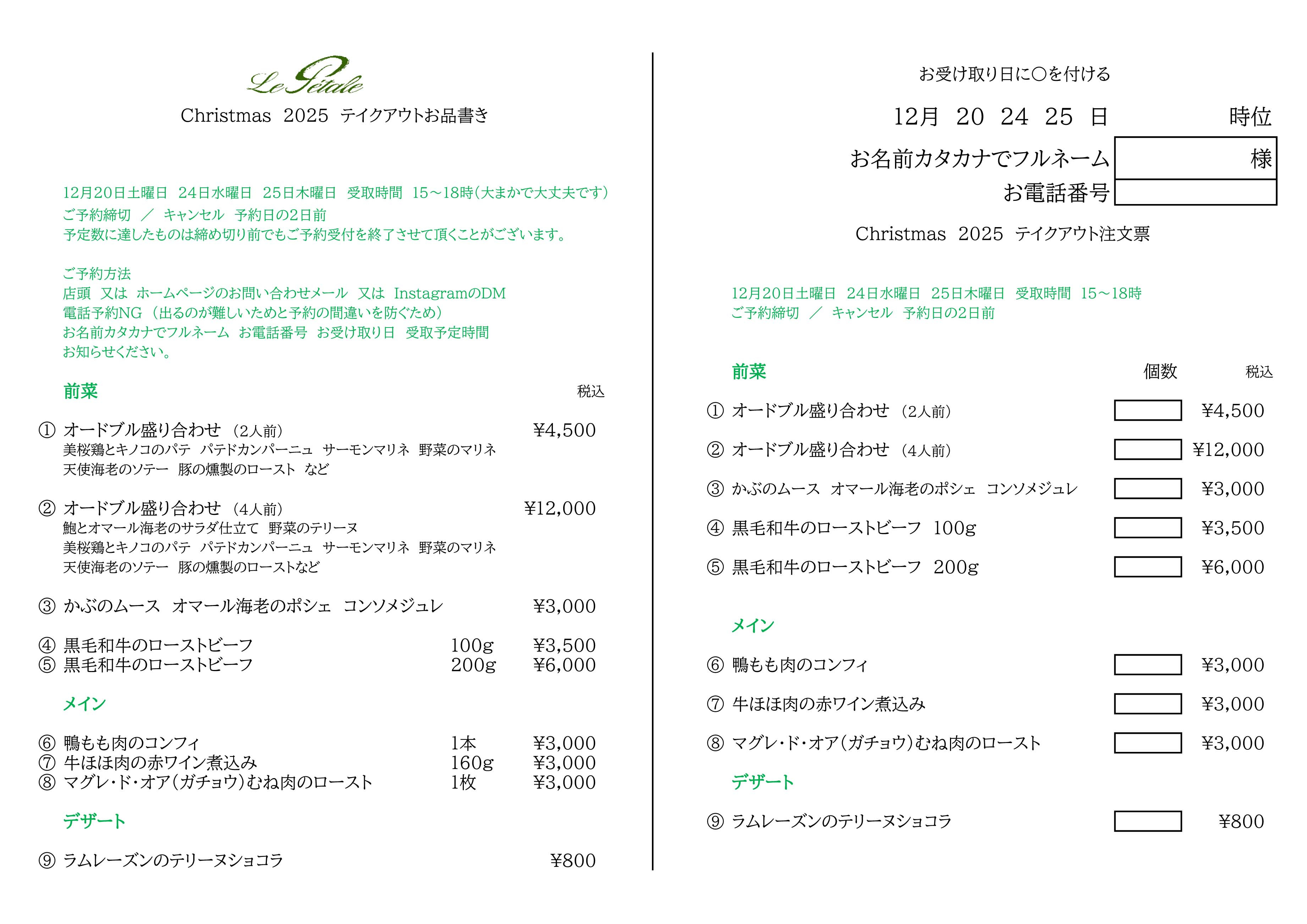 クリスマステイクアウト2025受付開始のお知らせ