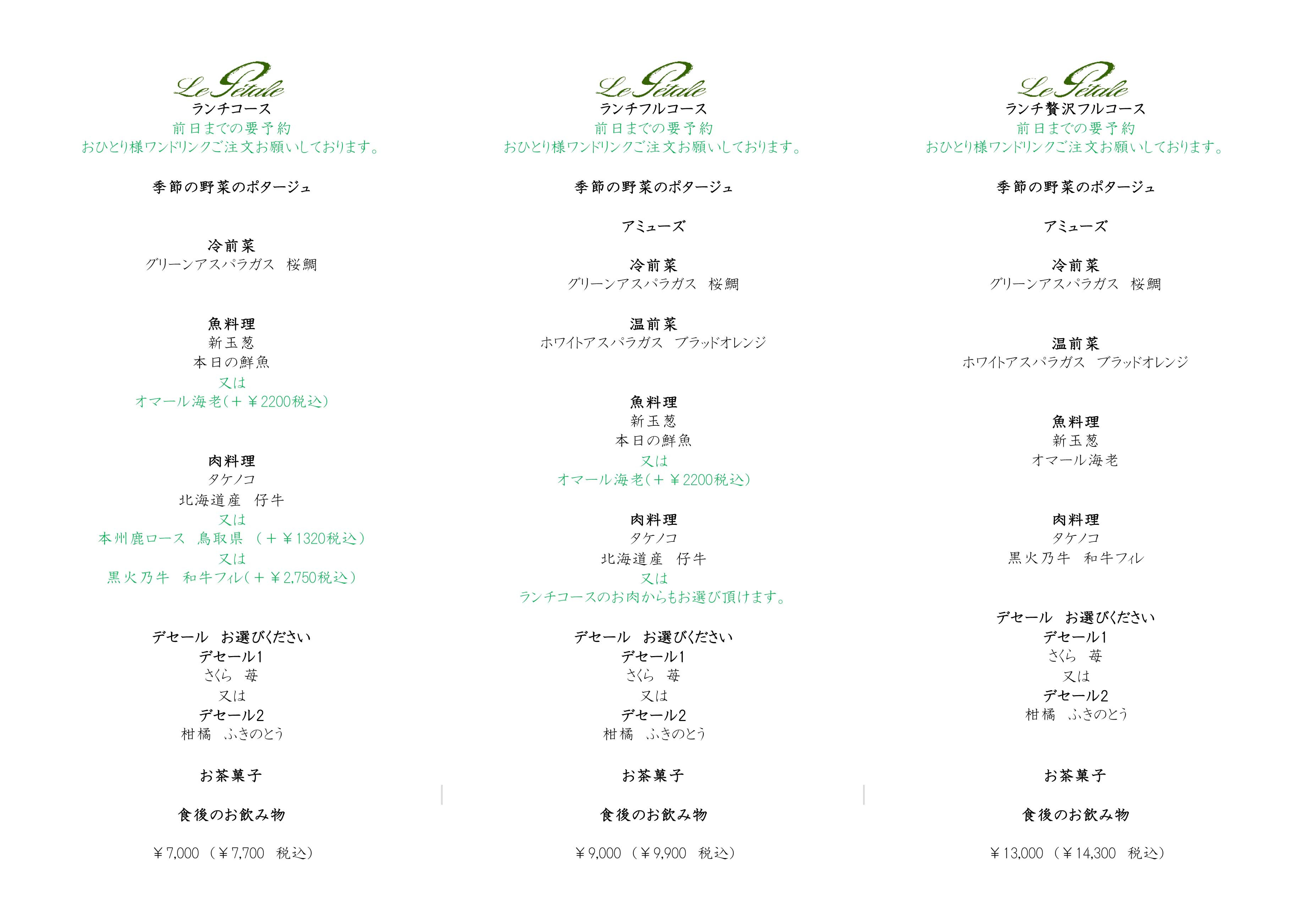 メニューのお知らせです。